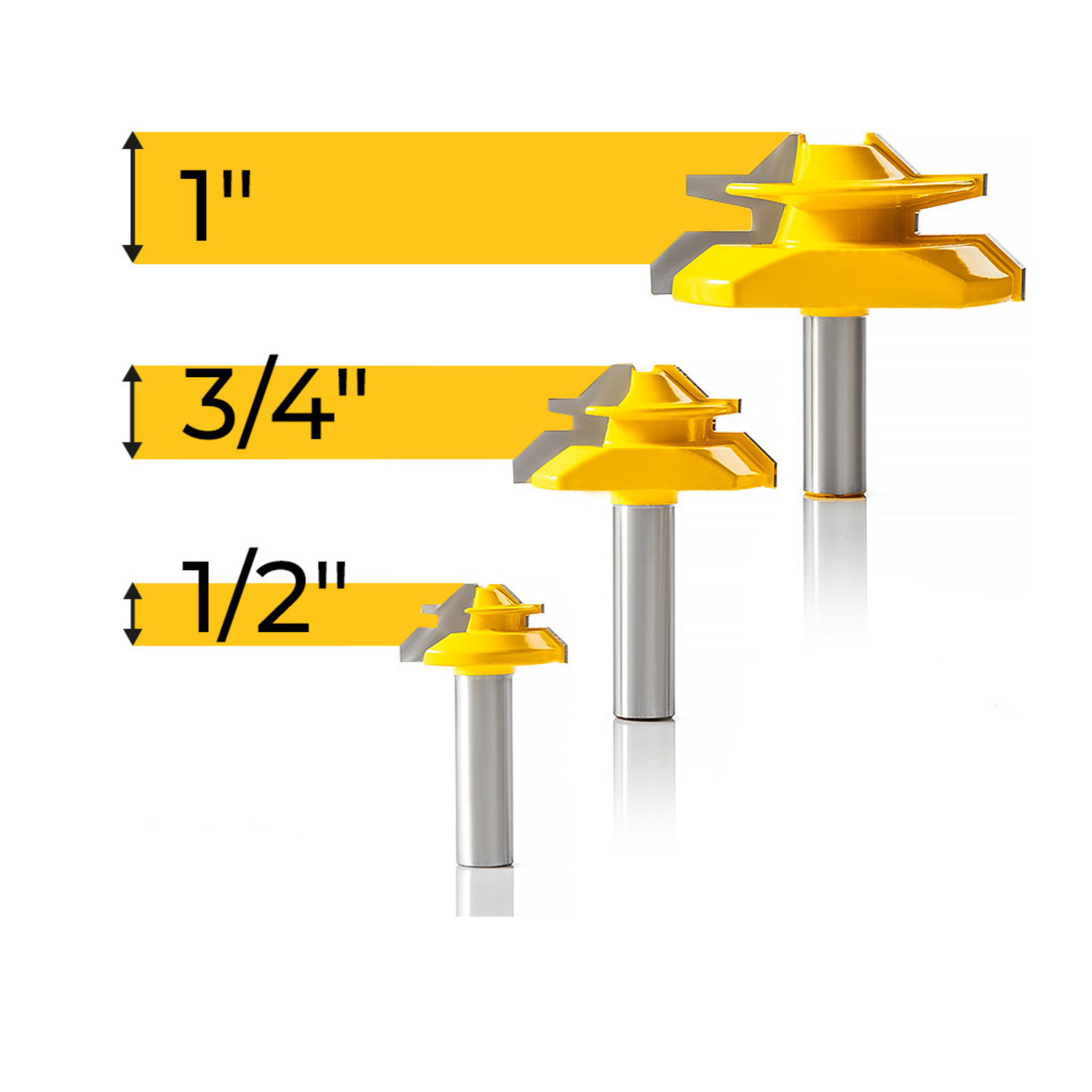 Enhance your woodworking skills with the PROMASTERTOOL™ 45-Degree Lock Miter Router Bit. Craft flawless 180° and 90° joints effortlessly, ensure smooth surfaces, and construct durable corners with ease. This tool offers a unique combination of flexibility and productivity, enabling you to tackle projects of any complexity. Experience a superior quality finish like never before.